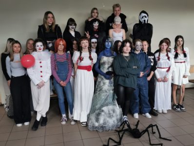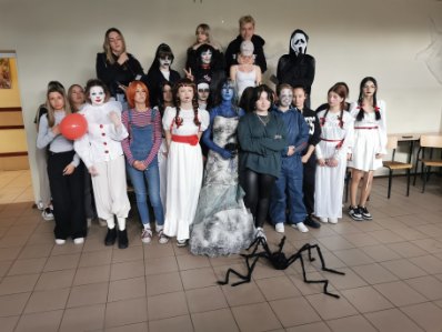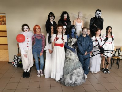 'Postać z horroru' to nazwa konkursu, który odbył się dziś w CKZiU. Klasa 4 technikum i 2 fryzjer zaprezentowaly się w stylizacjach najsłynniejszych postaci z horrorów. Było bardzo groźnie i niebezpiecznie, ale wszyscy przeżyli to spotkanie z horrorem i przy okazji humorem, bo śmiechu też nie zabrakło. Gratulujemy świetnych pomysłów na przebrania i dziękujemy za udział w konkursie!!!