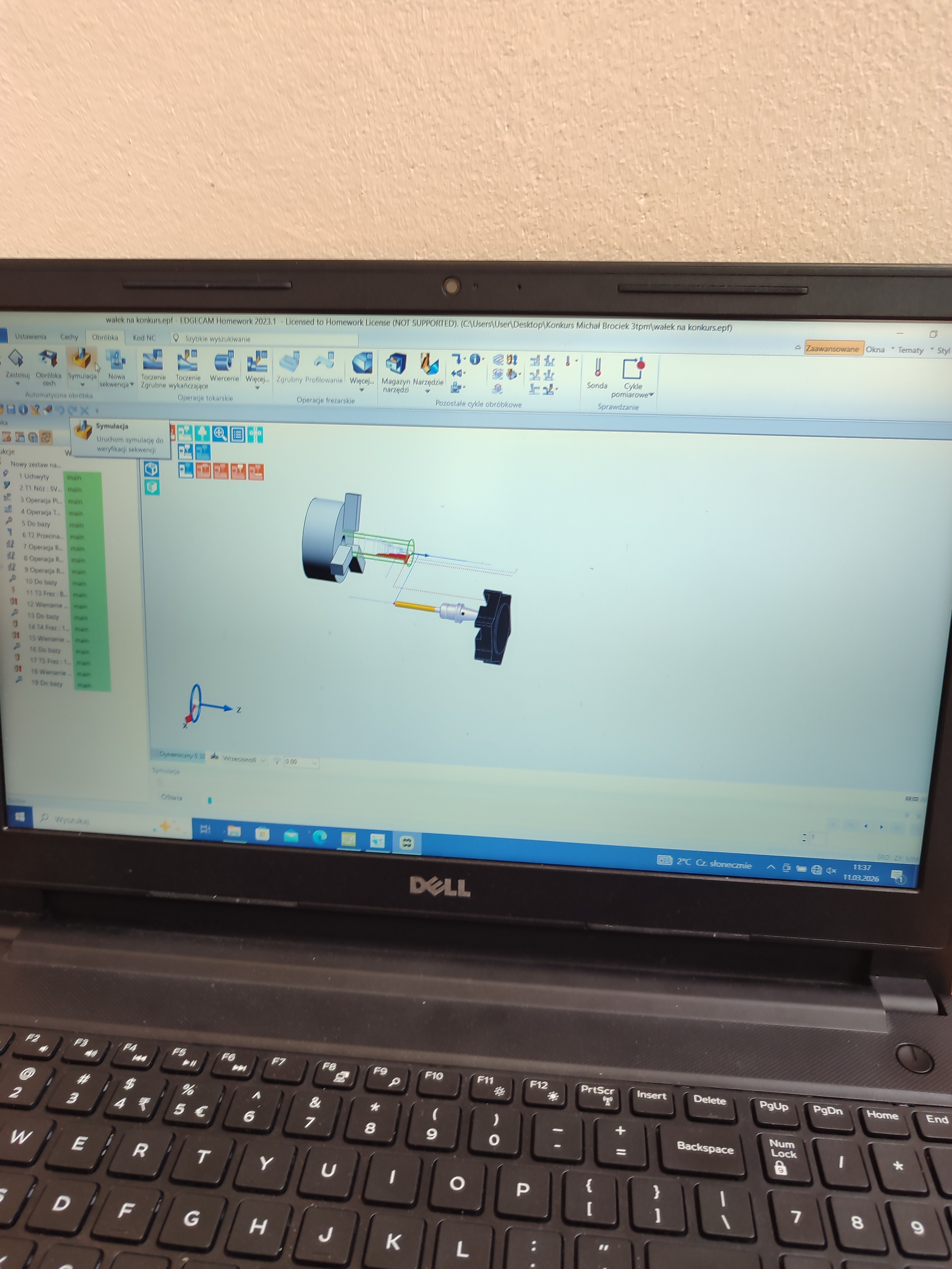 W dniu 11.03.2026r. w budynku warsztatów szkolnych odbyła się piąta edycja konkursu „Programowanie obrabiarek CNC w programie EDGE CAM”. W konkursie wzięło udział 6 uczniów klasy technik mechanik – operator obrabiarek. Zadanie konkursowe polegało na opracowaniu procesu technologicznego ( operacje, dobór parametrów obróbki ), wykonania rysunku elementu klasy wałek w programie CAD , wykonaniu symulacji obróbki w programie EDGE CAM. Pierwsze miejsce zajął - Krystian Grad, drugie – Michał Brociek , trzecie – Karol Mazur.