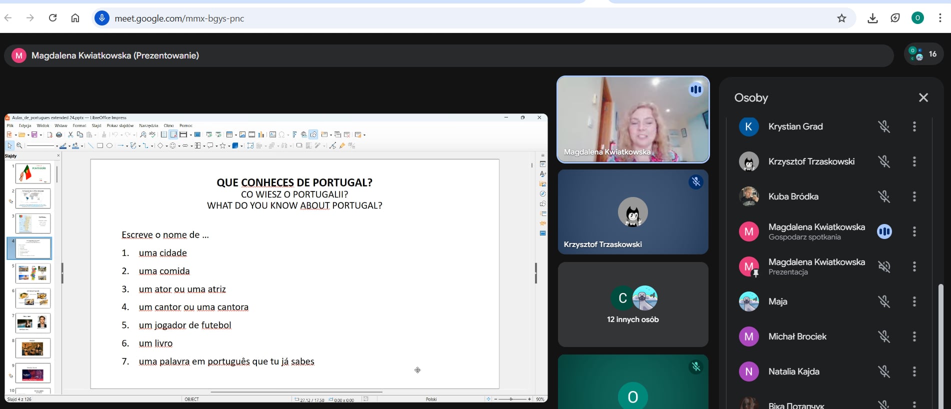 W ramach projektu Erasmus+ „Staż w Portugalii-drogowskazem europejskiej kariery”,-nr 2025-1-PL01-KA122-VET-000341344 uczestnicy rozpoczęli 25 godzinny kurs j. portugalskiego obejmujący naukę języka portugalskiego, w tym podstawy niezbędne w komunikacji zawodowej. W skład kursu wchodzi 20 godzin online i 5 godzin w Faro zakończone egzaminem i grą miejską,.