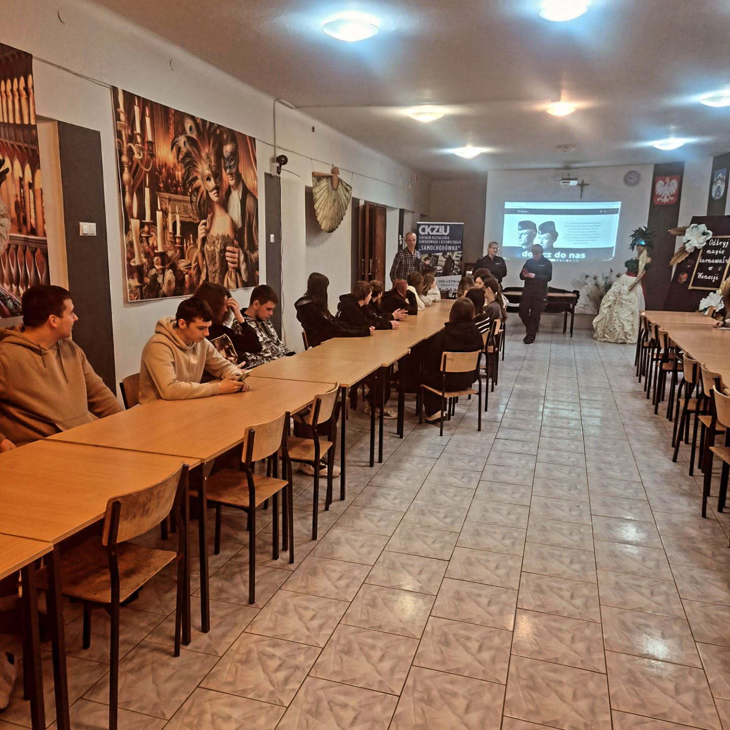 Uczniowie CKZiU z klas 4T5A, 4TMF, 1FR, 5TA oraz 3 Elektromechanik wzięli udział w spotkaniu z przedstawicielami Komendy Powiatowej Policji, poświęconym rekrutacji do służby w Policji, możliwościom dalszego kształcenia oraz przyszłej ścieżce zawodowej.