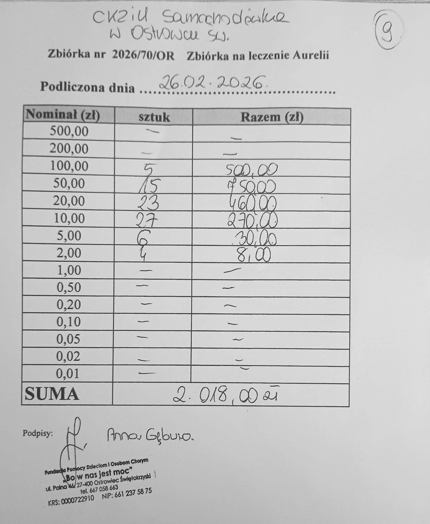Społeczność „Samochodówki”, we współpracy ze Starostwem Powiatowym w Ostrowcu Świętokrzyskim oraz przy ogromnym wsparciu uczniów, rodziców i nauczycieli, dołożyła swoją cegiełkę do walki o zdrowie małej Aurelii, która dzielnie zmaga się z guzem mózgu.